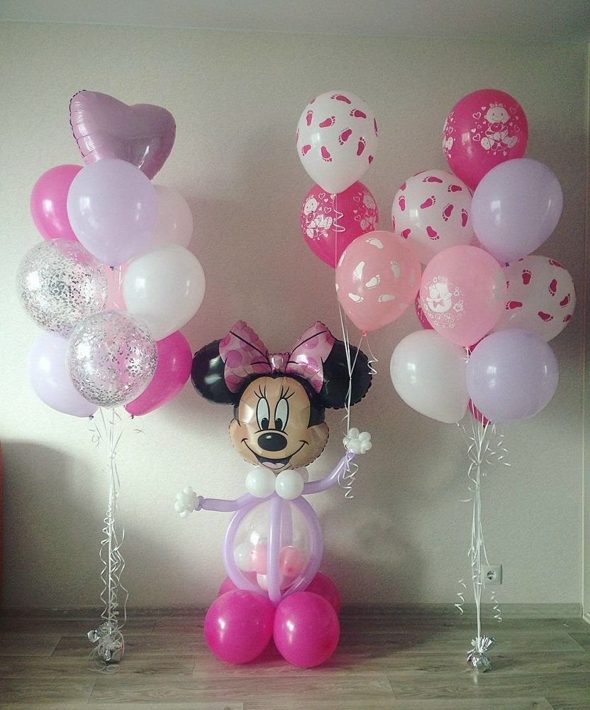 ВСТРЕЧА С РОДДОМА # 19 -фонтан (7 шаров без рисунка+2 с конфеттм+сердце фольга 45 см+груз)945 р. -минни 1200 р. -фонтан (5 шаров без рисунка+5 шаров с рисунком+груз) 730 р. -