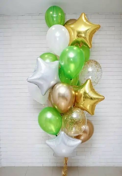 Фонтан из 9 шаров без рисунка + 4 фольгированных шара + 5 хром+груз -